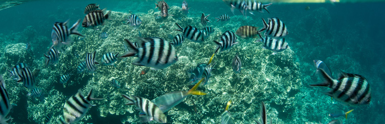 Scuba diving normally evokes images of a black-clad diver suspended peacefully above a deep blue abyss. But Barracuda Point is not where divers go to watch the underwater world drift slowly past. Chaos and pandemonium rule at Barracuda Point. The fish dart past at shocking speeds, swallowing divers in a swirling vortex of glistening silver. Green and hawksbill turtles come ashore to nest between April and September. During this time Sipadan’s translucent waters are populated by hundreds of turtles, offering divers a chance to share a swim with the ocean’s most ancient creatures.